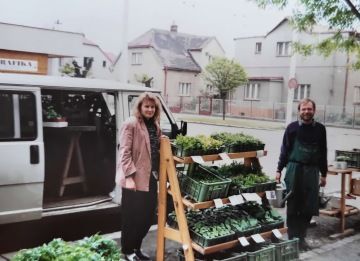 Na Roudné v Plzni už od roku 1927 hospodaříme na té samé půdě. Pocházíme ze staré zahradnické rodiny, kde se řemeslo předává po generace. Naše zahradnické kořeny sahají až k “dědovi” Rudolfovi Miltovi, který začal jako pachtýř. V jeho stopách pokračovali Jaroslav a Ludmila Miltovi (na snímku), rodiče zakladatele současného obchodu. Ten sedí ještě nic netušící na tříkolce.
